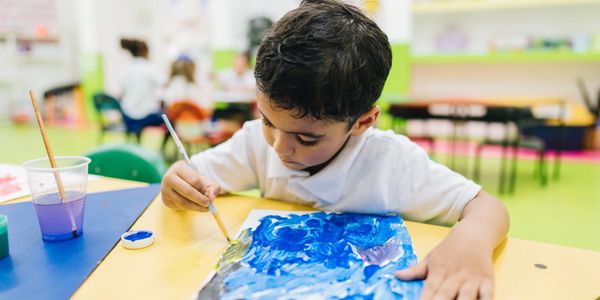 Children explore painting, drawing, collage, sculpture, and other tactile art forms while learning: